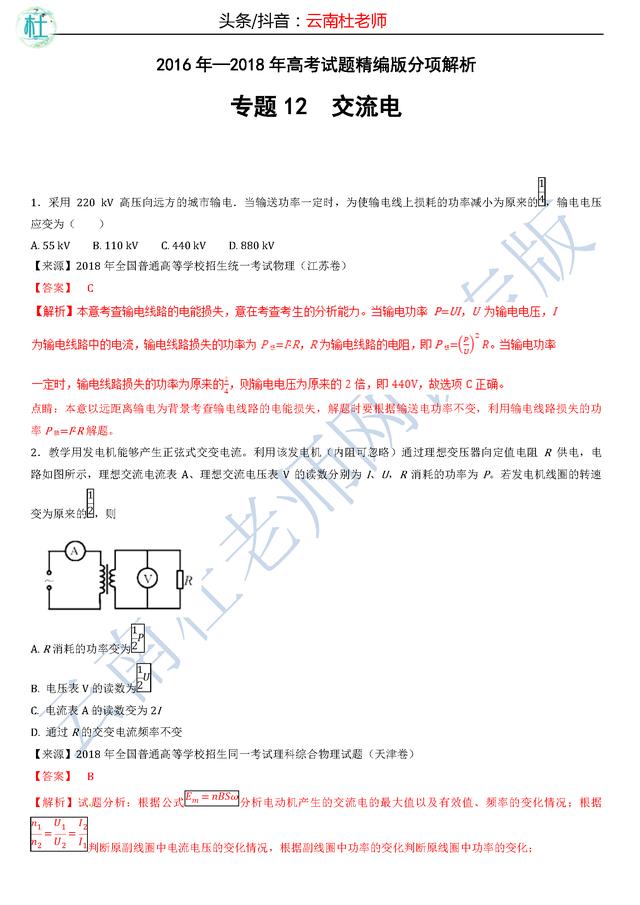 高中物理 高考试题精编版分项解析专题12 交流电 小初高题库试卷课件教案网